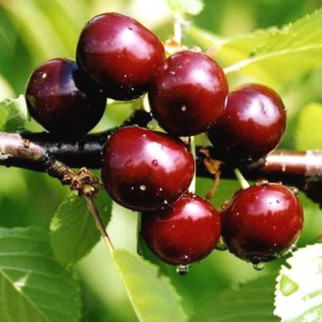 Оно порадует вас восхитительными ягодами весом 8-10 грамм, темно-красного, почти бордового цвета. Мякоть ягод сочная и ароматная, с удивительным сочетанием вишневого и черешневого вкуса.