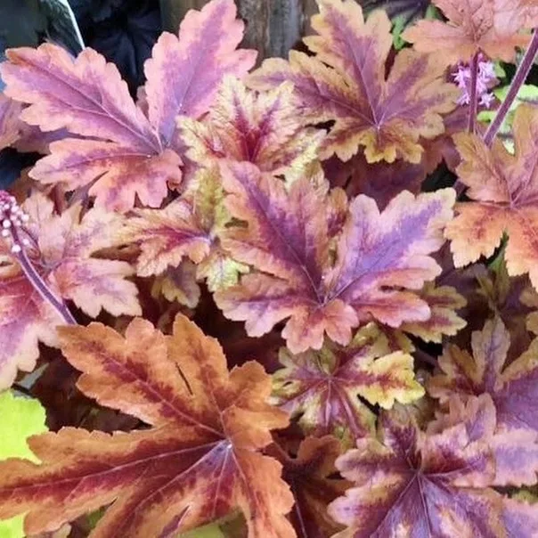 Гейхера Гейхерелла Хопскотч «Hopscotch» — декоративное растение, подходящее для сада или дома. Привлекает внимание яркой листвой или цветами.