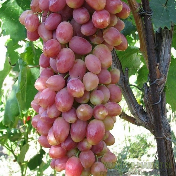 Виноград Ксения (Анжелика) — столовый сорт, раннеспелый, срок созревания 4-4,5 месяца. Грозди крупные, конической формы, массой 1-1,5 килограмма. Ягоды овальные, бело-розовые, крупные, до 30 граммов, сочные и очень сладкие. Морозостойкость до -25°C.