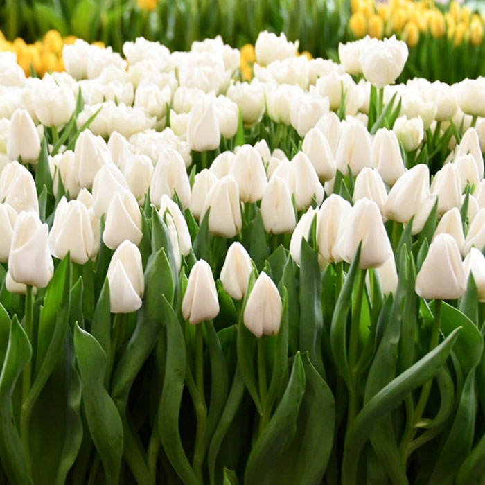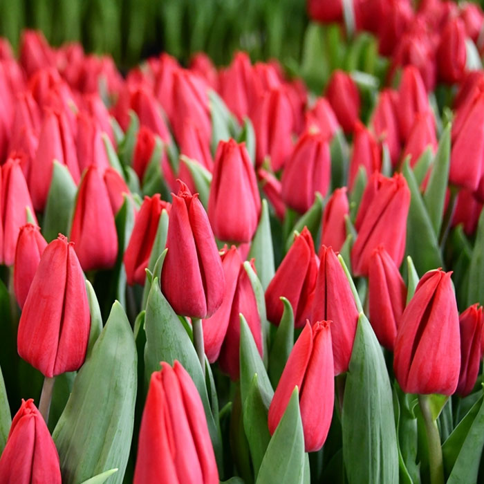 В производстве — только проверенные сорта тюльпанов с устойчивыми характеристиками, крупным бутоном и ровным стеблем.