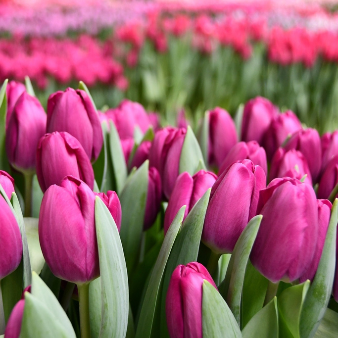В производстве — только проверенные сорта тюльпанов с устойчивыми характеристиками, крупным бутоном и ровным стеблем.